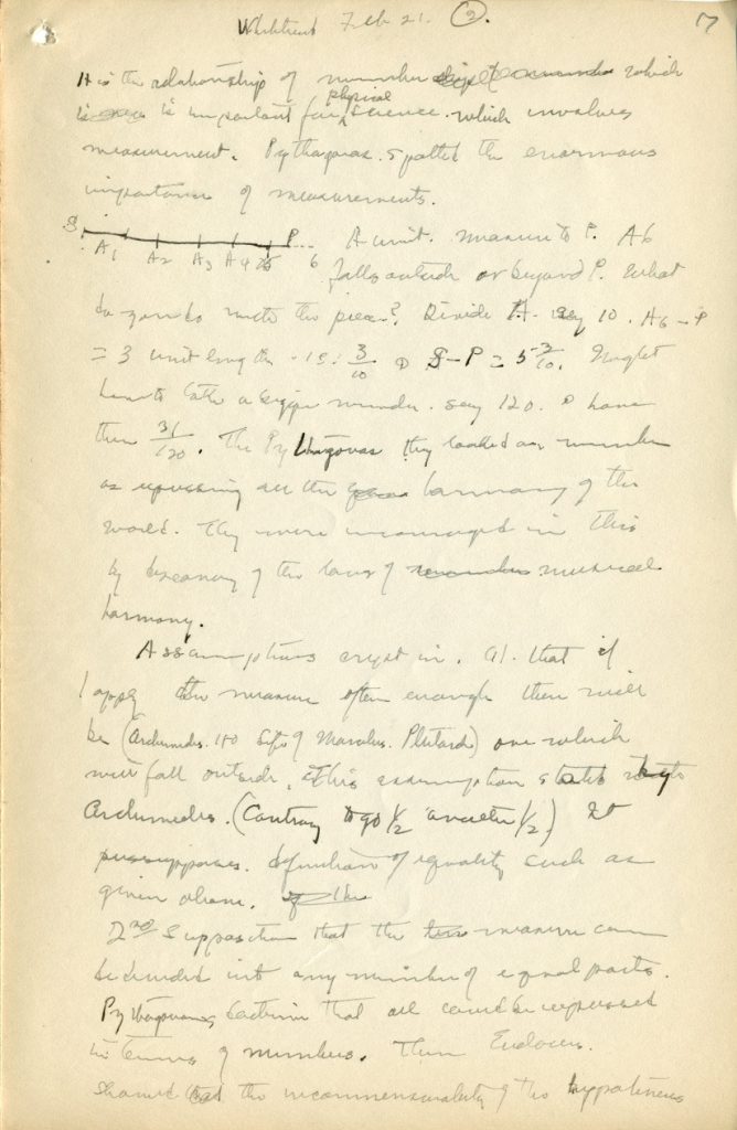 A page from of Sinclair Kerby-Miller’s notes taken during Whitehead’s Philosophy 3b, to be included in HL3