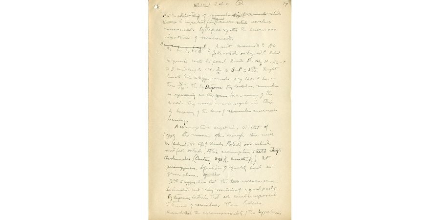 A page from of Sinclair Kerby-Miller’s notes taken during Whitehead’s Philosophy 3b, to be included in HL3